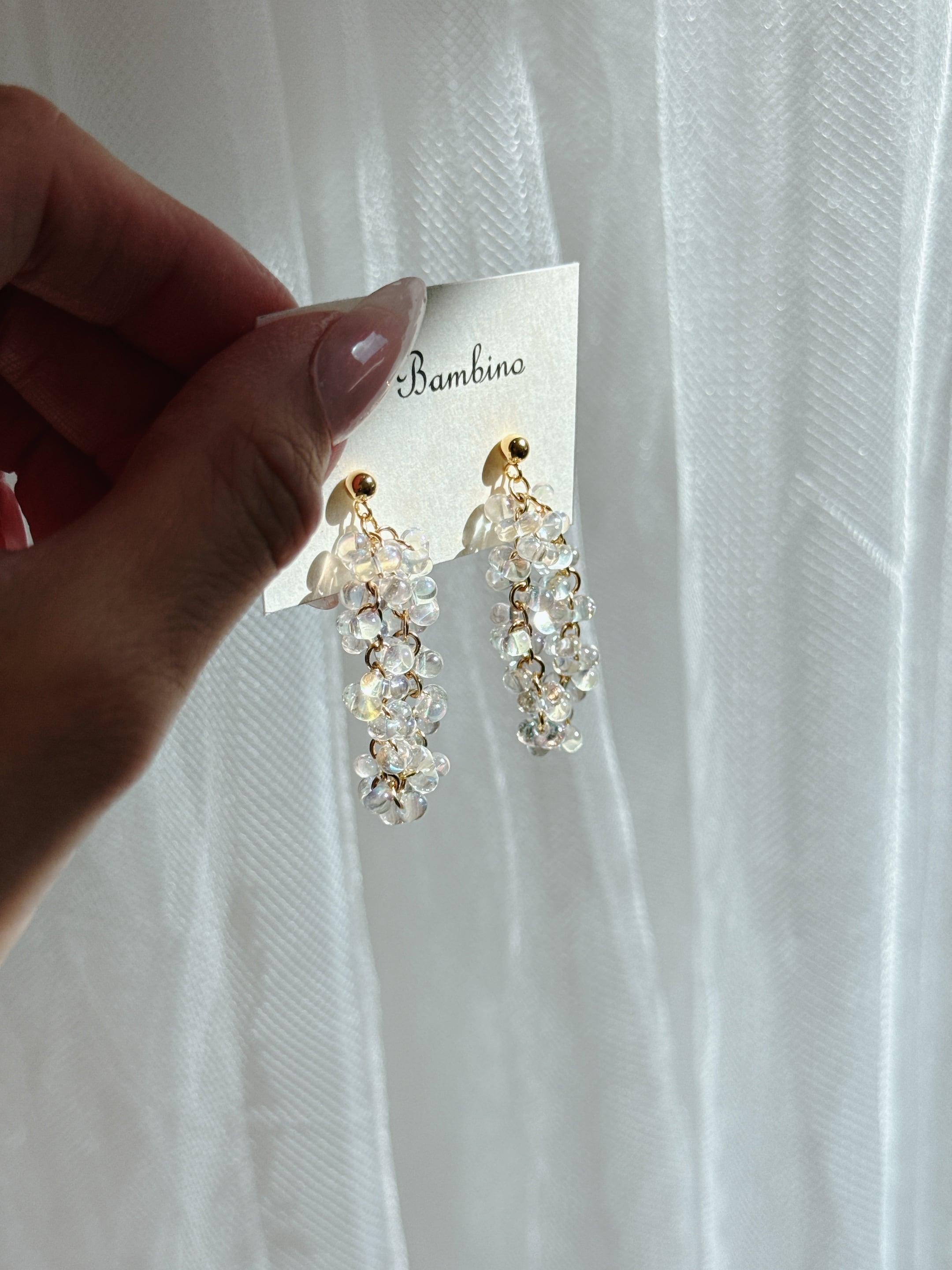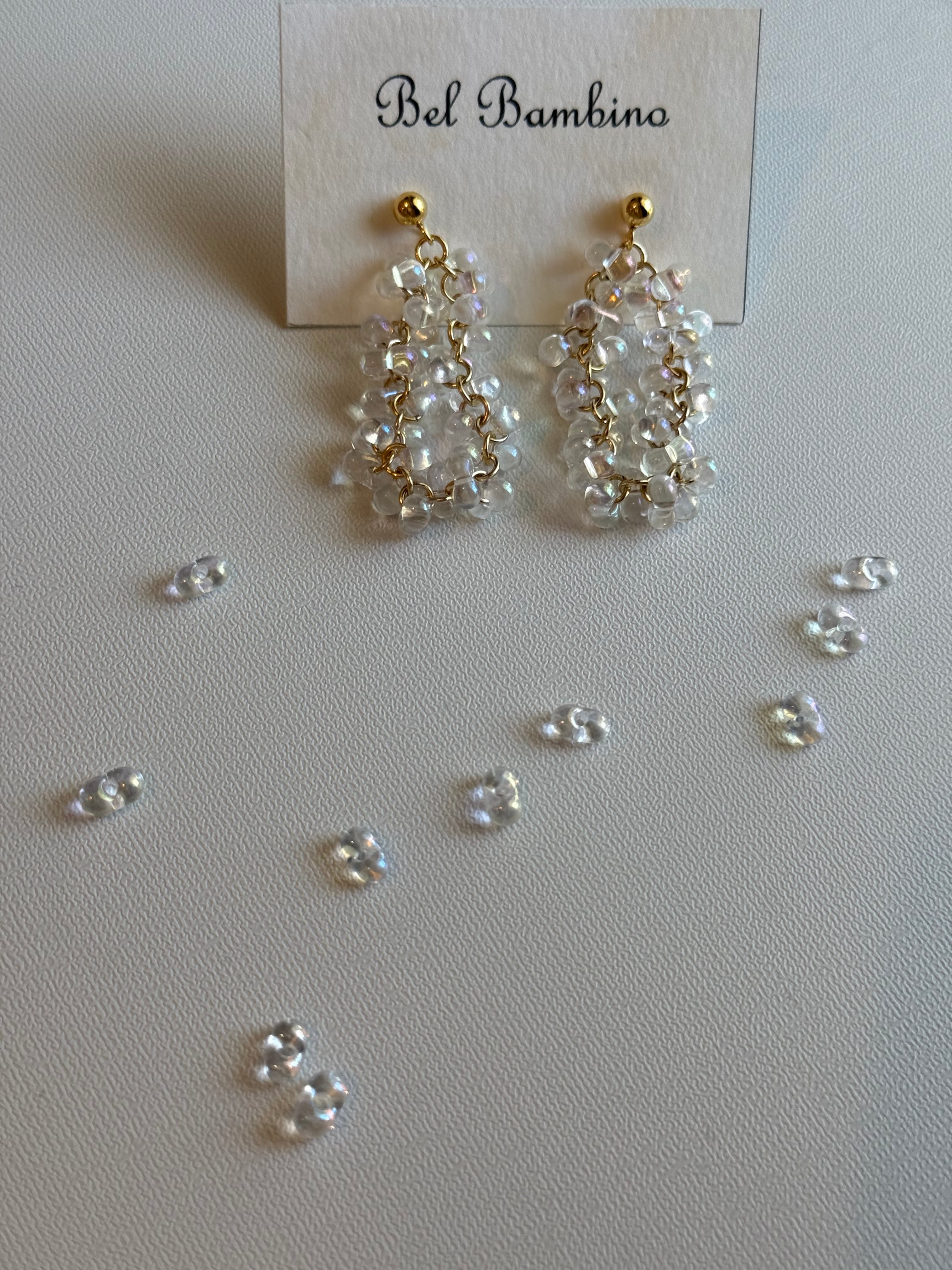 透明感あふれるガラスビーズが、動くたびにきらめく上品なアクセサリーとなっています。