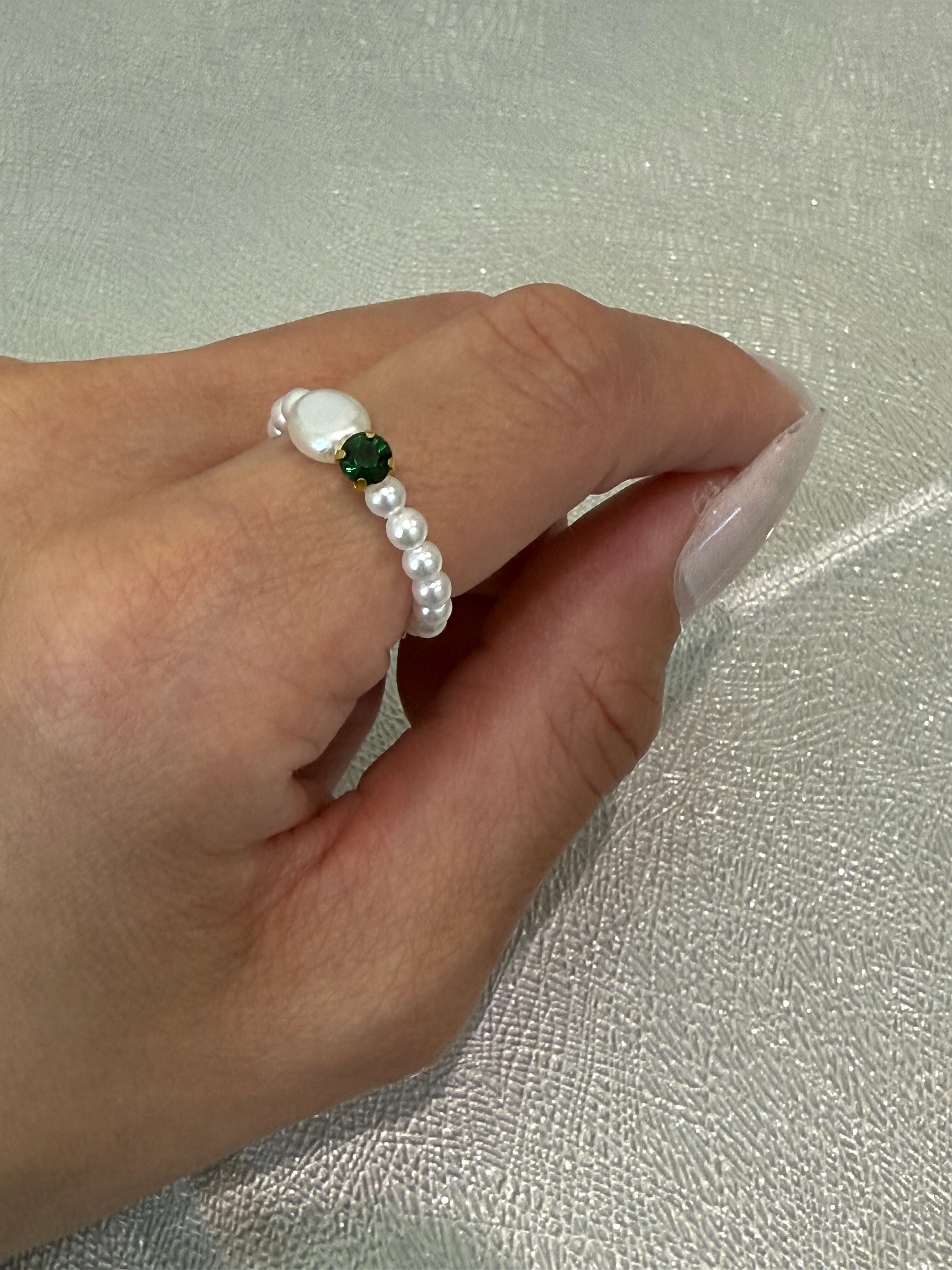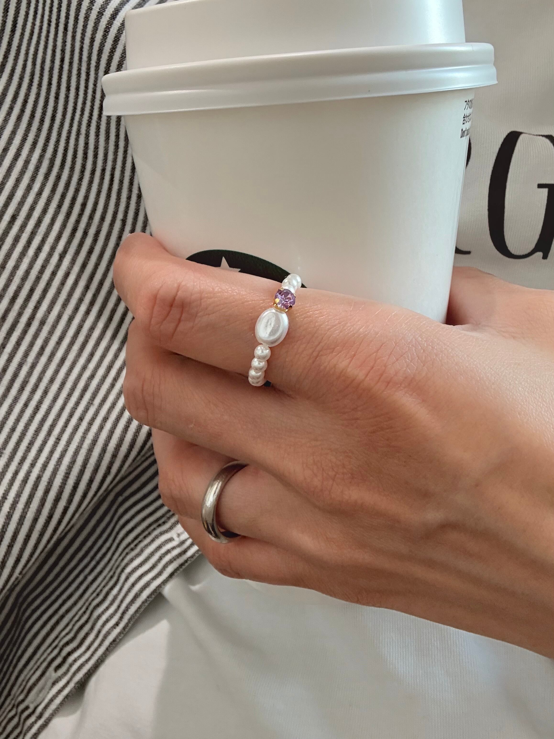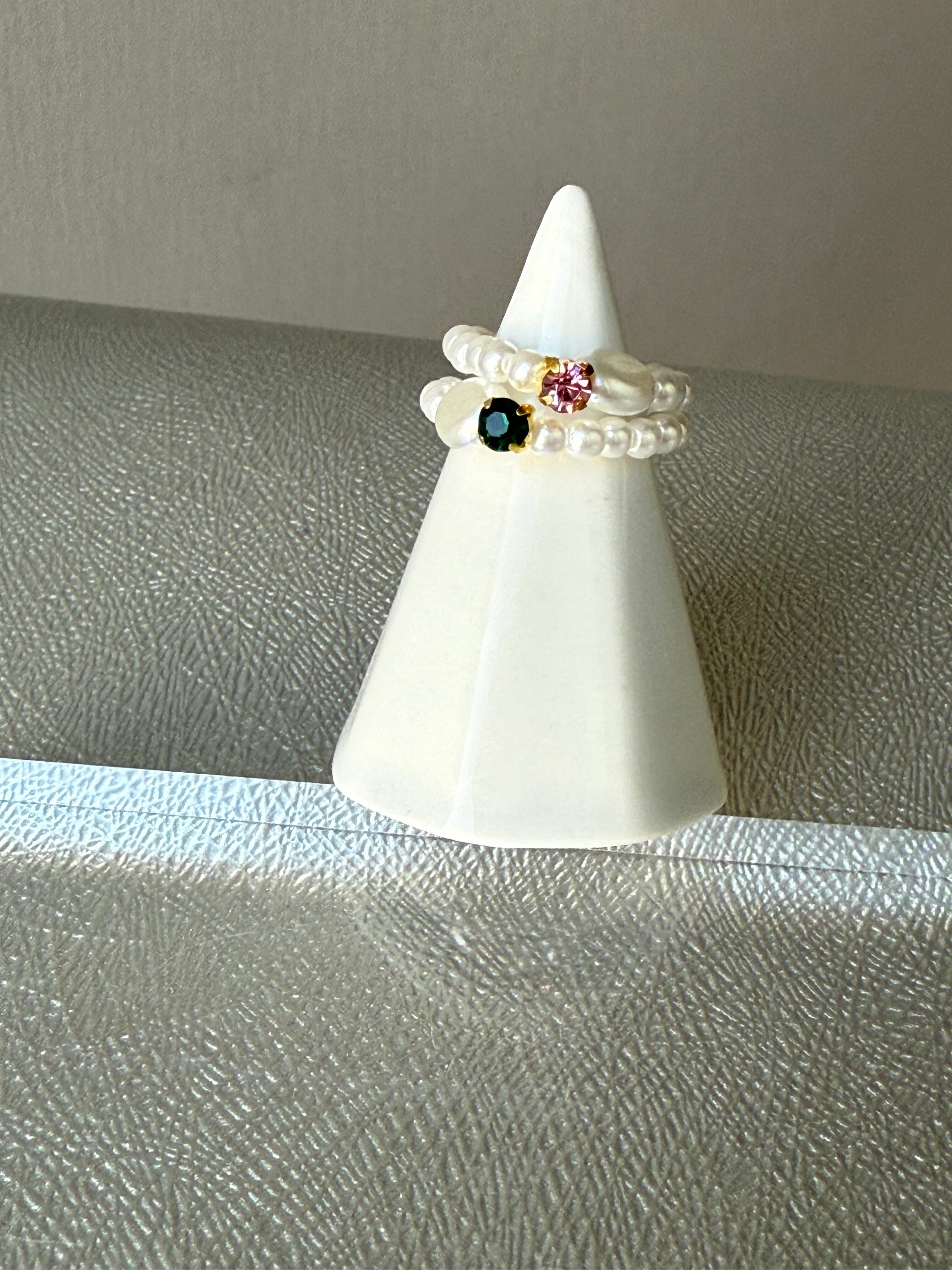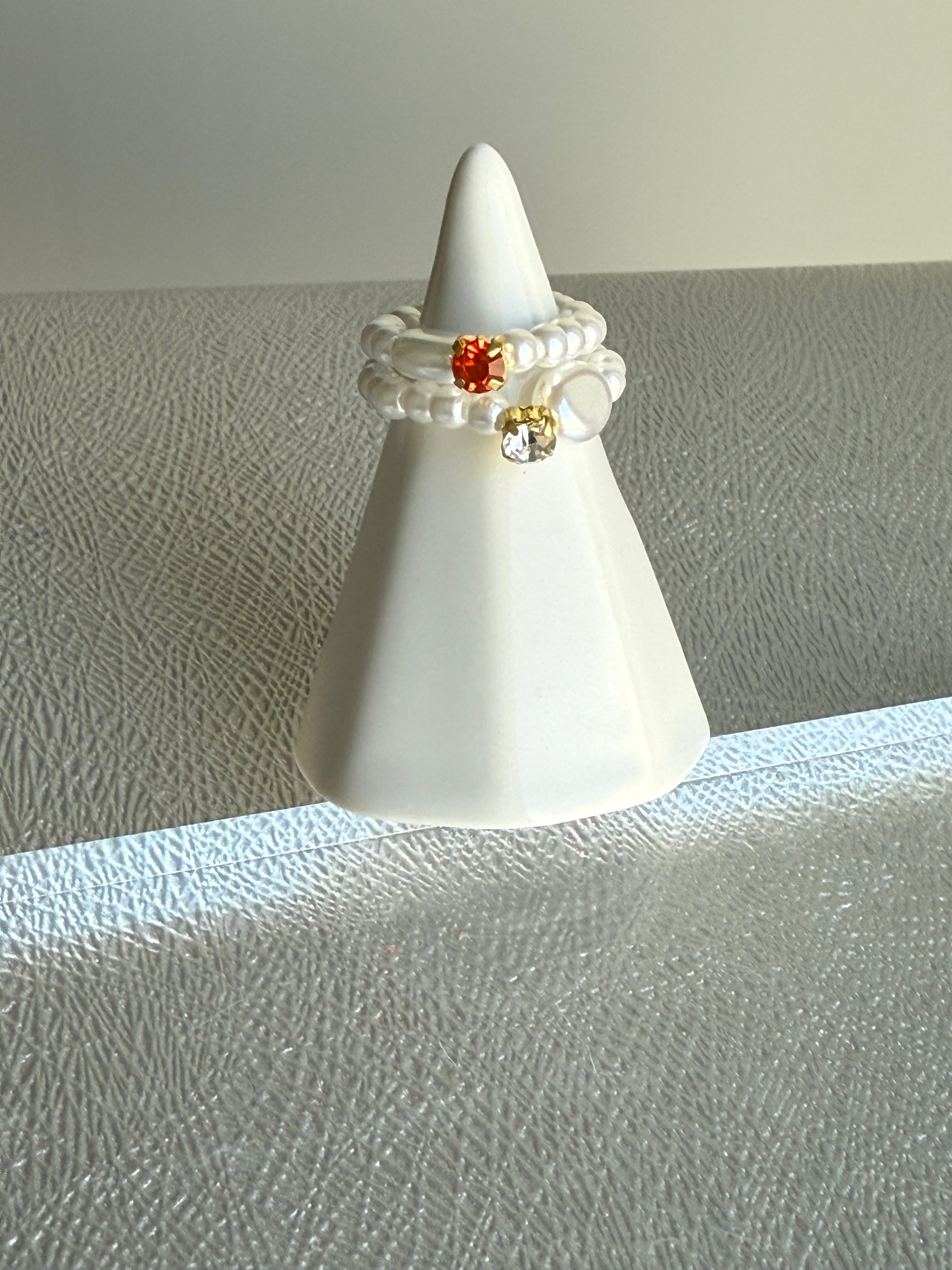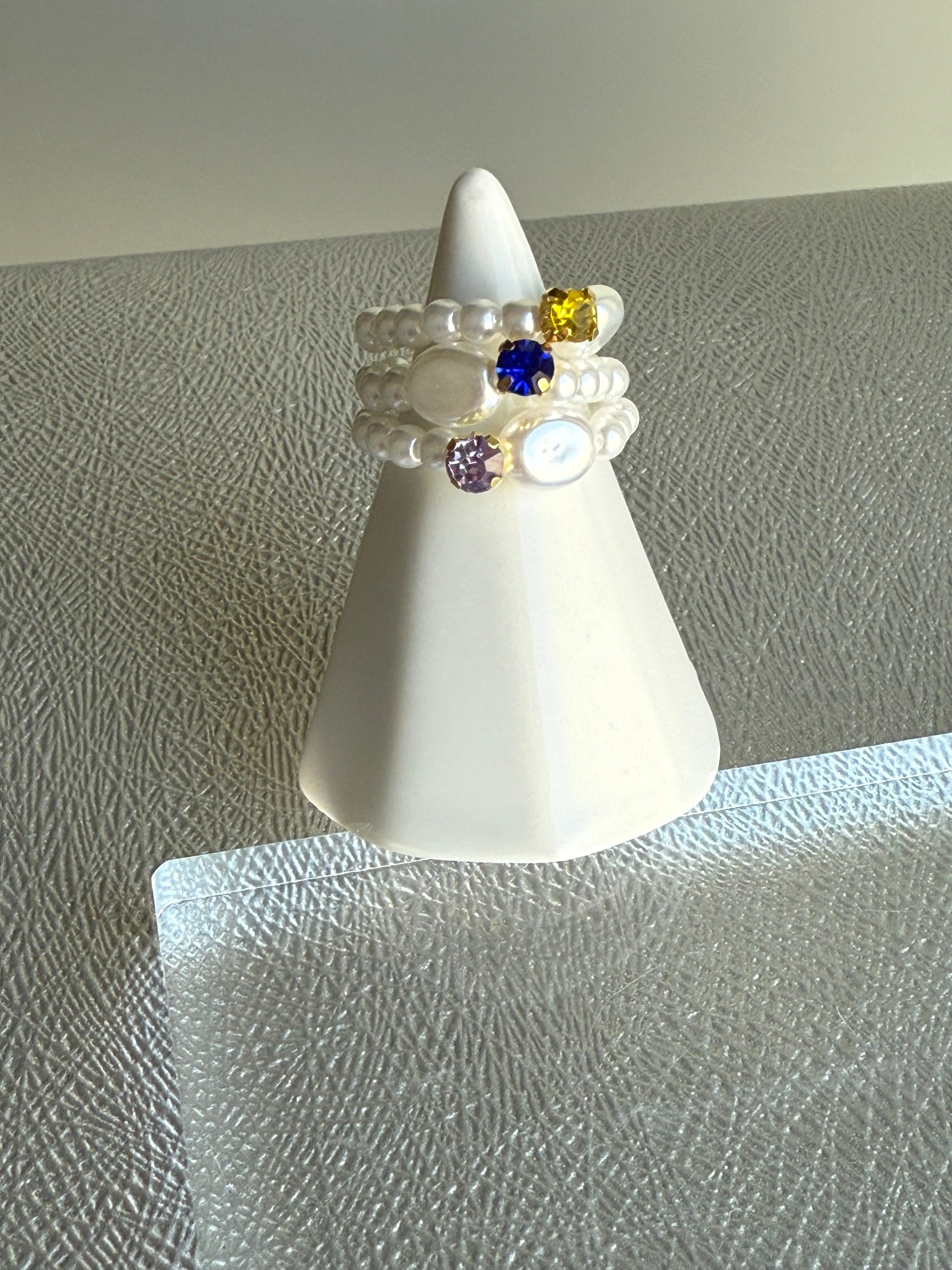 カラフルなビジューと艶やかなパールを組み合わせた、特別なリング。