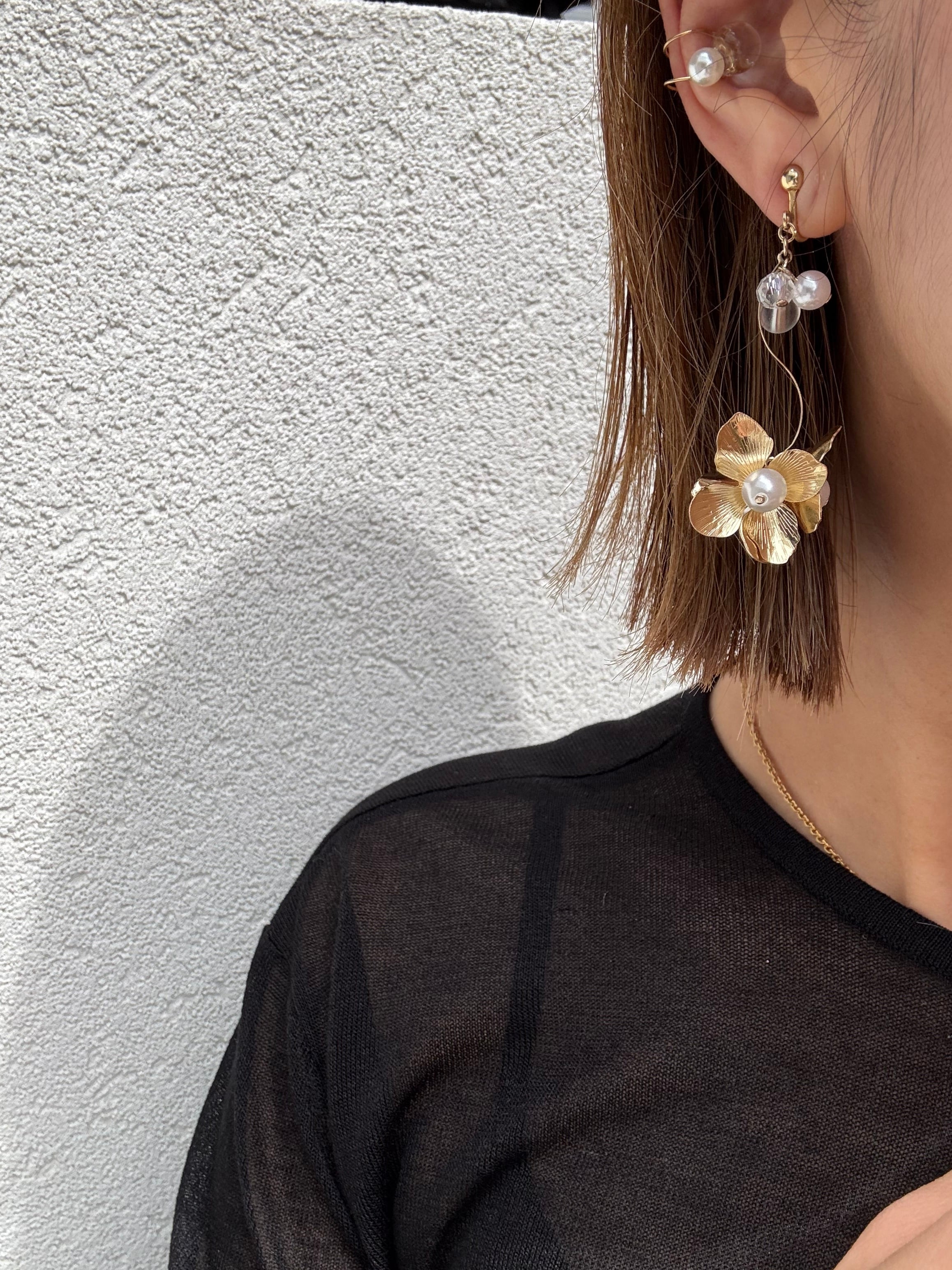 中央のパールと、上部の透明感あるビーズが女性らしい上品さを演出。