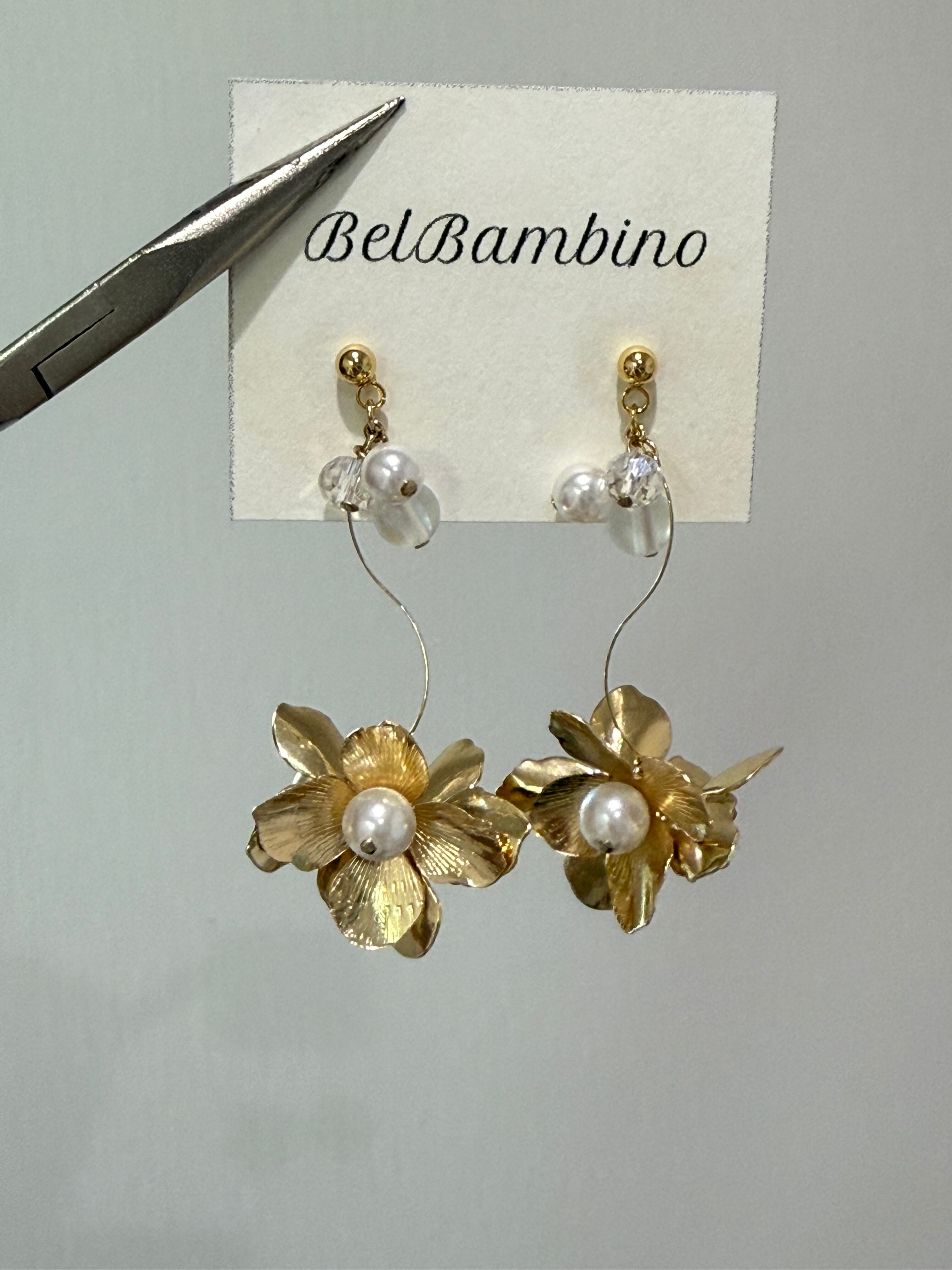 立体感のあるゴールドのお花が、顔まわりを一気に華やかにしてくれます