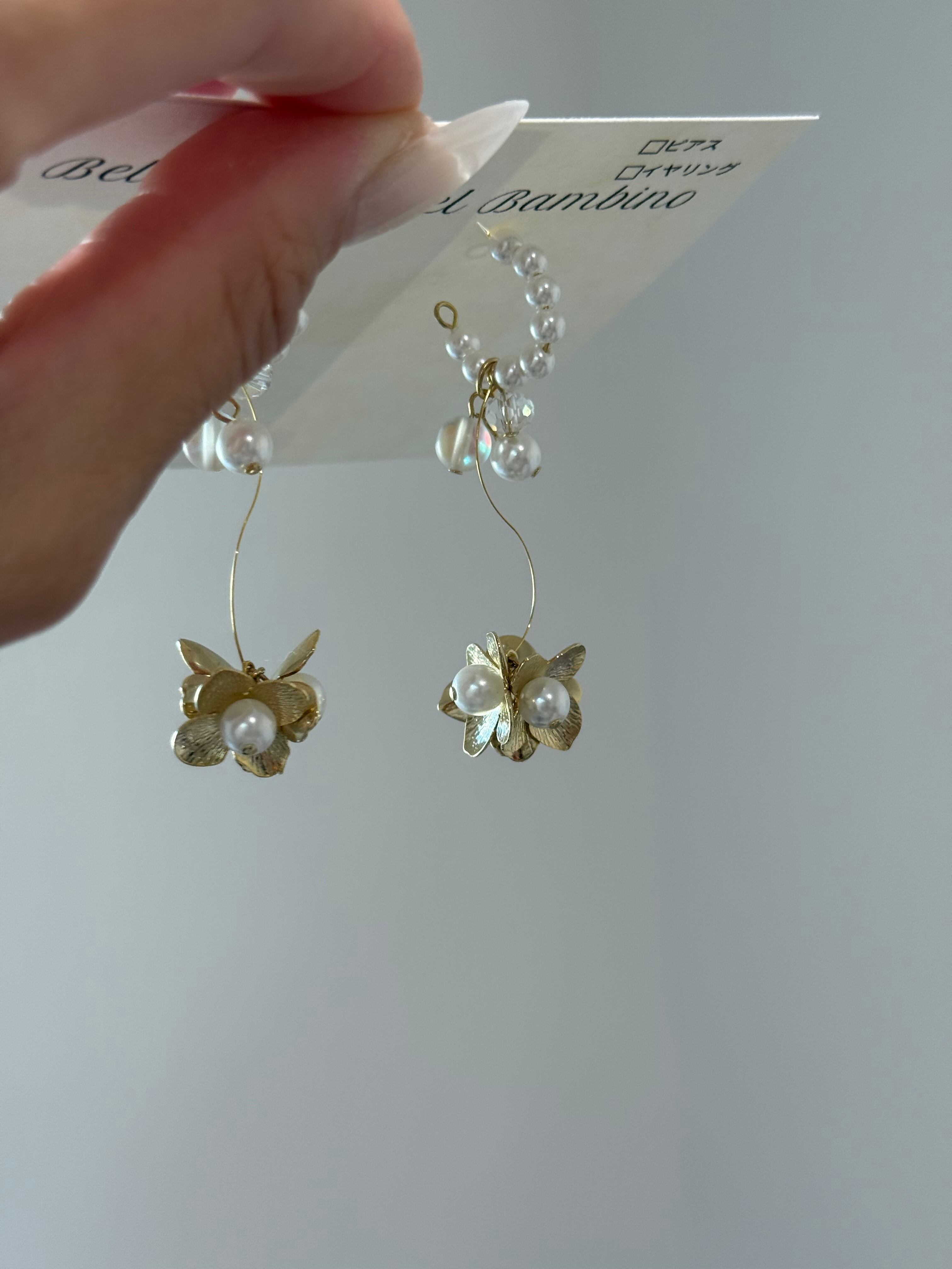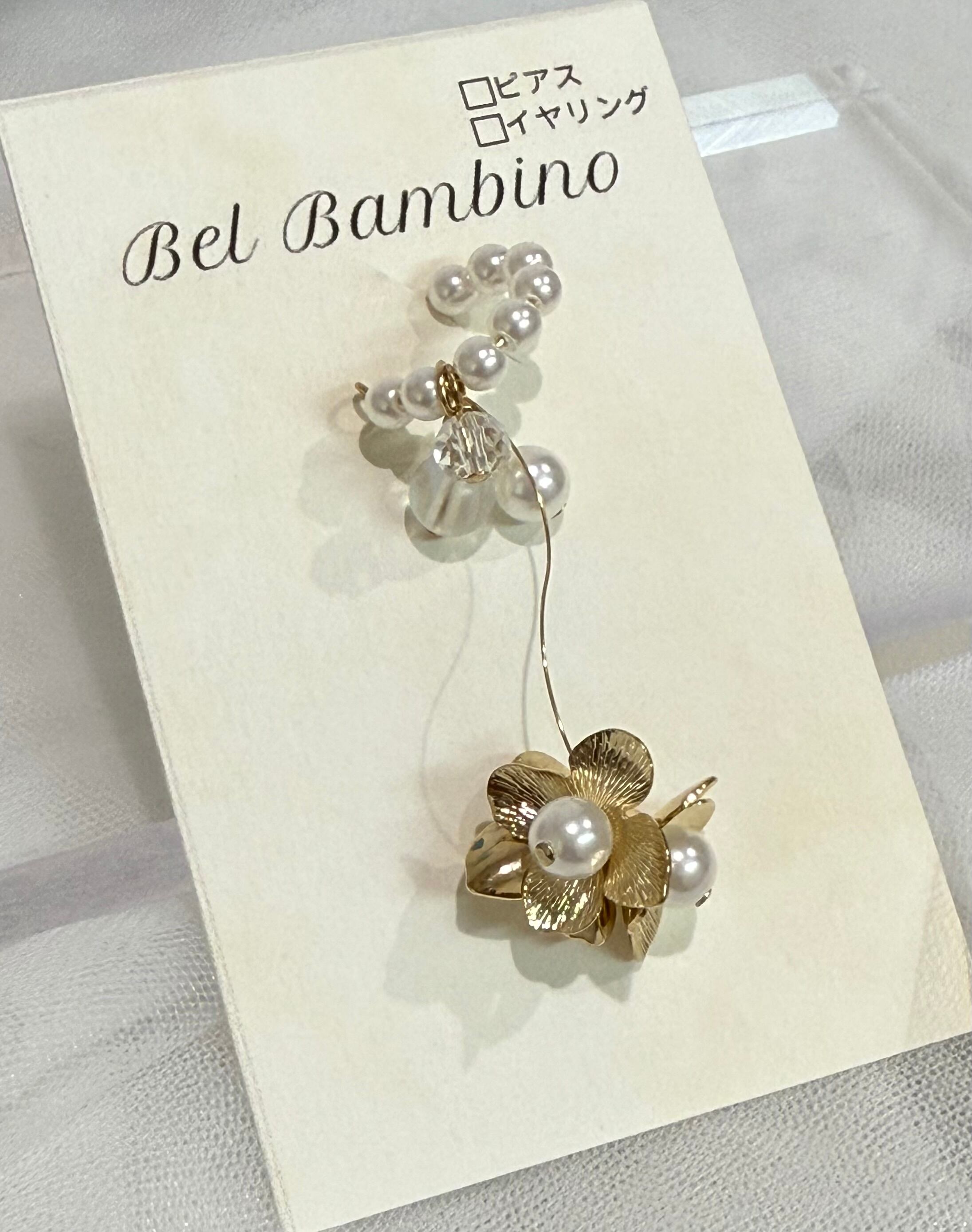 繊細なパールと透明感のあるビーズが耳元で輝き、