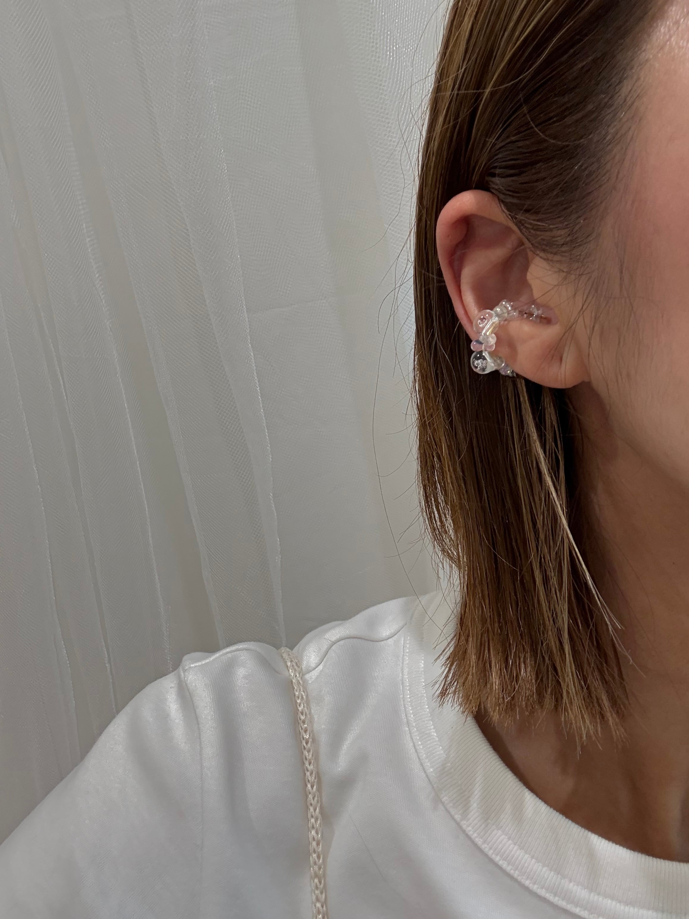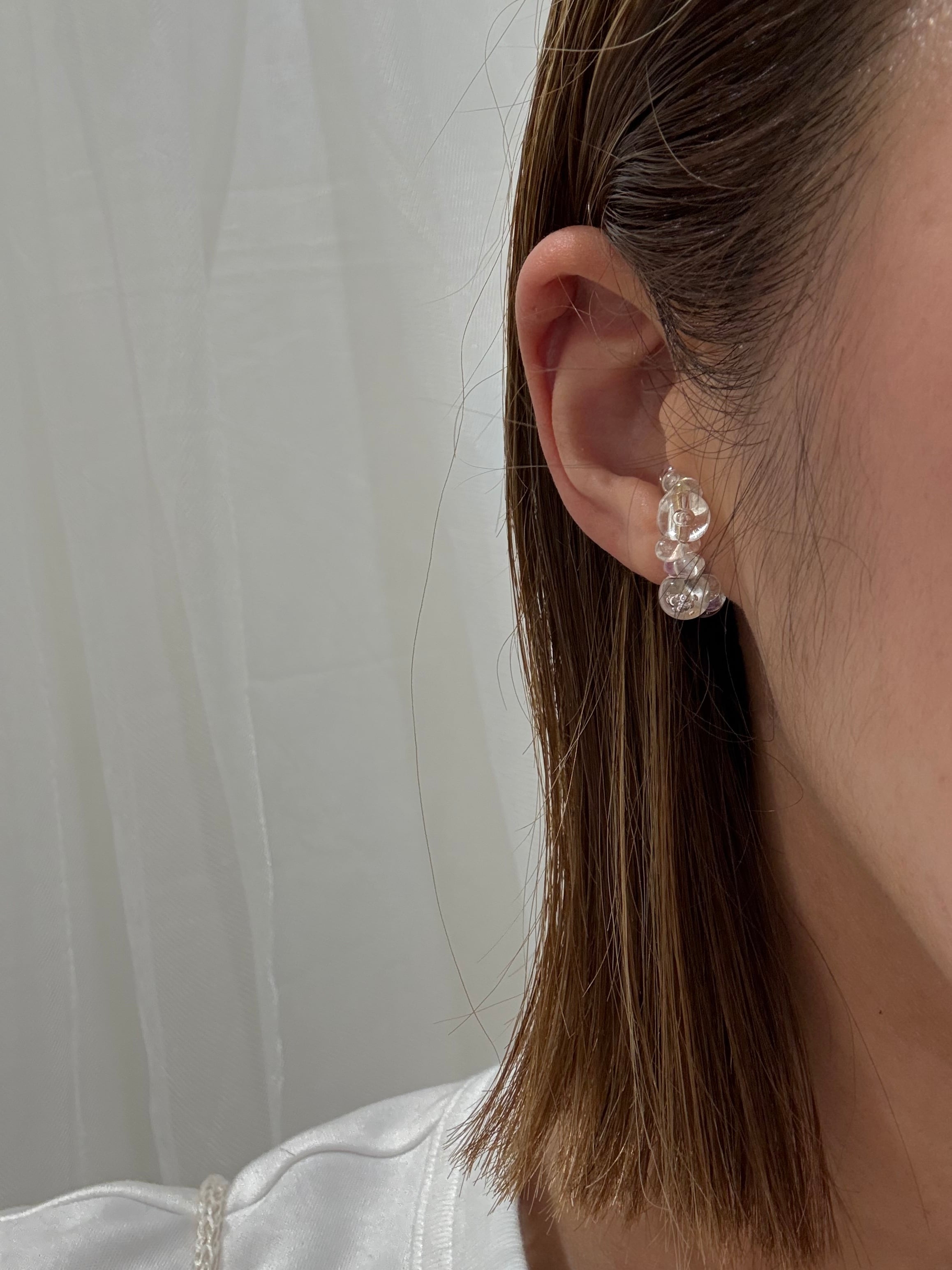 光が差し込むさりげなく存在感を放つクリアビーズのイヤカフ